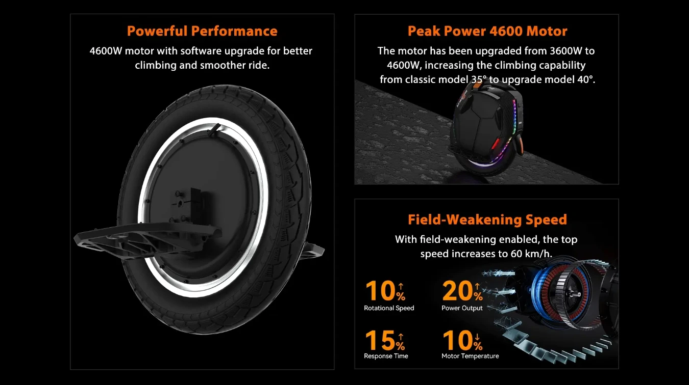 • Field-Weakening for Higher Speeds: The Pro version features an updated system architecture that allows for a higher top speed of 60 km/h (37 mph)—an increase over the original 50 km/h.